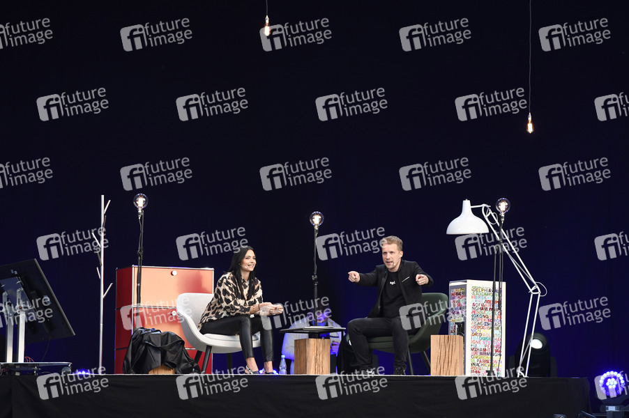 Oliver Pocher mit Ehefrau Amira Pocher bei der ersten Autokultur-Veranstaltung 'Die Pochers hier' auf dem Schützenplatz. Die Besucher verfolgen unter Berücksichtigung klarer Hygiene-Vorschriften während der Corona-Krise den Auftritt aus dem Auto. Hannover, 07.05.2020