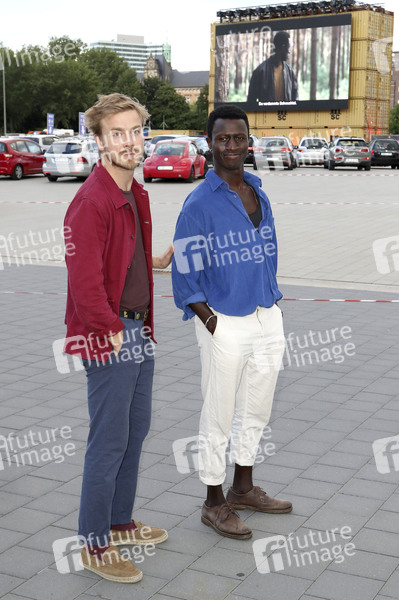 Albrecht Schuch und Welket Bungue bei der Premiere des Kinofilms 'Berlin Alexanderplatz' im Autokino Bewegte Zeiten auf dem Heiligengeistfeld. Hamburg, 15.07.2020.