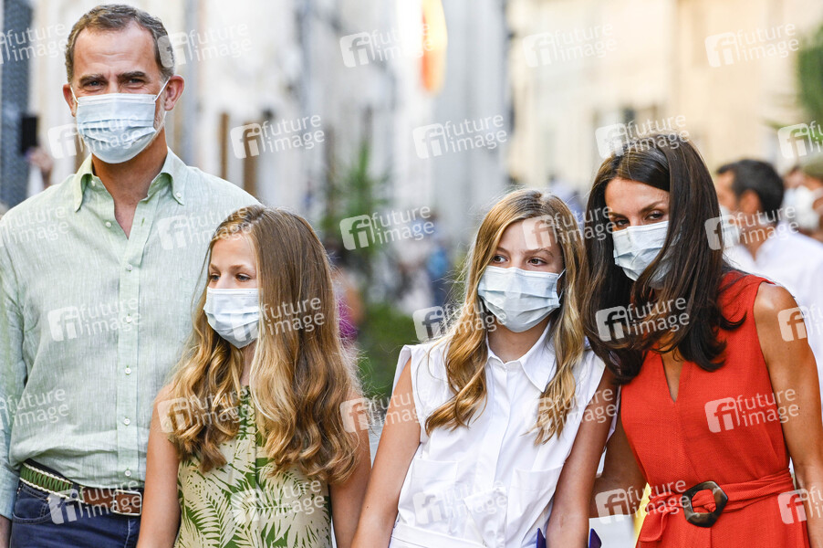 König Felipe VI. von Spanien, Kronprinzessin Leonor von Spanien, Prinzessin Sofia von Spanien und Königin Letizia von Spanien besuchen das Geburtshaus und Museum von Fray Junipero Serra und das Franziskanerkloster Fray Bartolomé auf Mallorca. Petra, 10.08.2020
