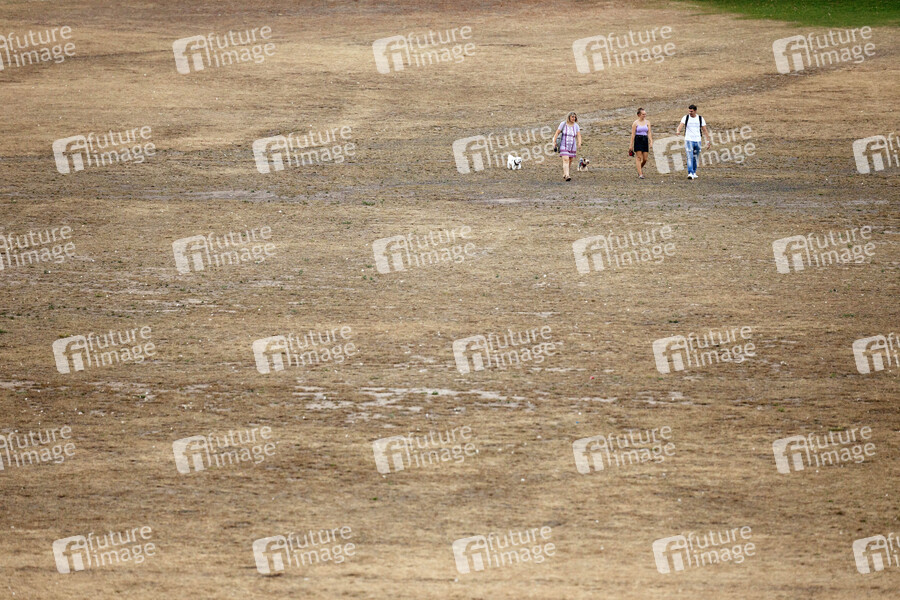 Die sommerliche Hitze und der Regenmangel haben weite Teile der Parkanlagen in der Bonner Rheinaue verdorren lassen und für erhebliche Rasenschäden gesorgt. Bonn, 14.08.2020