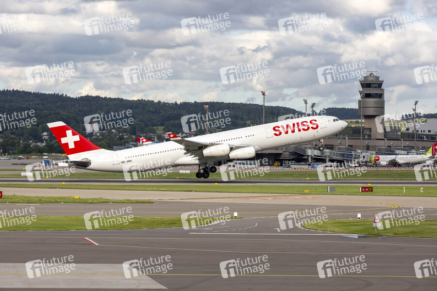 Airbus A340-313X, Reg: HB-JMA beim Abflug vom Flughafen Zürich, 15.08.2019