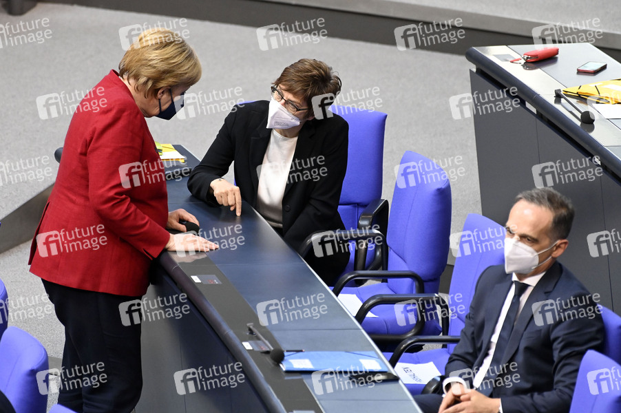 Angela Merkel, Annegret Kramp-Karrenbauer und Heiko Maas in der 238. Sitzung des Deutschen Bundestages im Reichstagsgebäude. Berlin, 25.08.2021