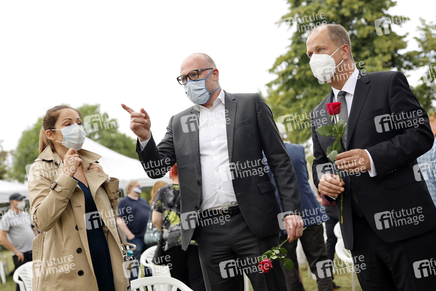 Sören Link und Joachim Stamp auf der Gedenkfeier zum 10. Jahrestag der Loveparade Katastrophe, bei der 21 Menschen starben. Duisburg, 24.07.2020