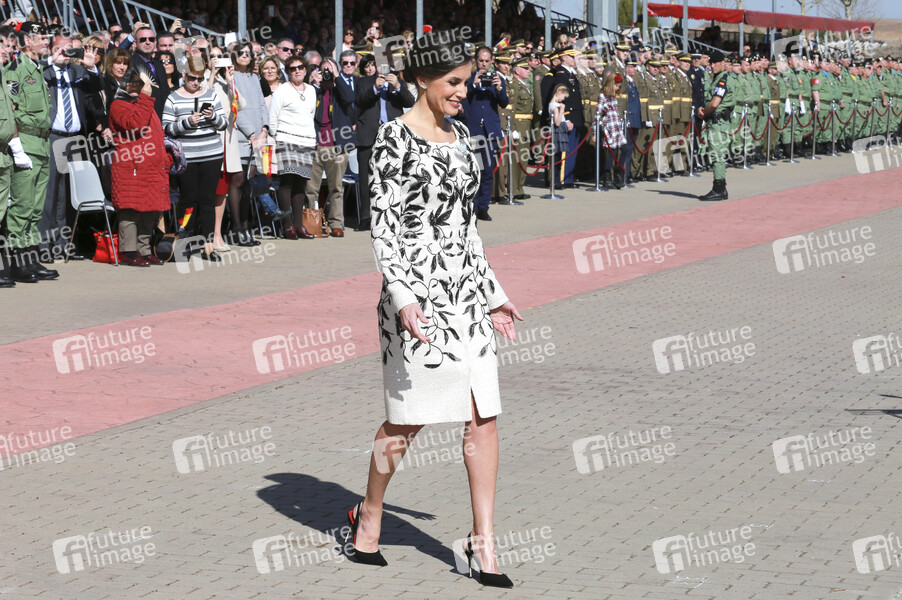 Königin Letizia von Spanien bei der Flaggenzeremonie der Fallschirmjägerbrigade Almogávares auf der Princip Base. Paracuellos de Jarama, 23.02.2019