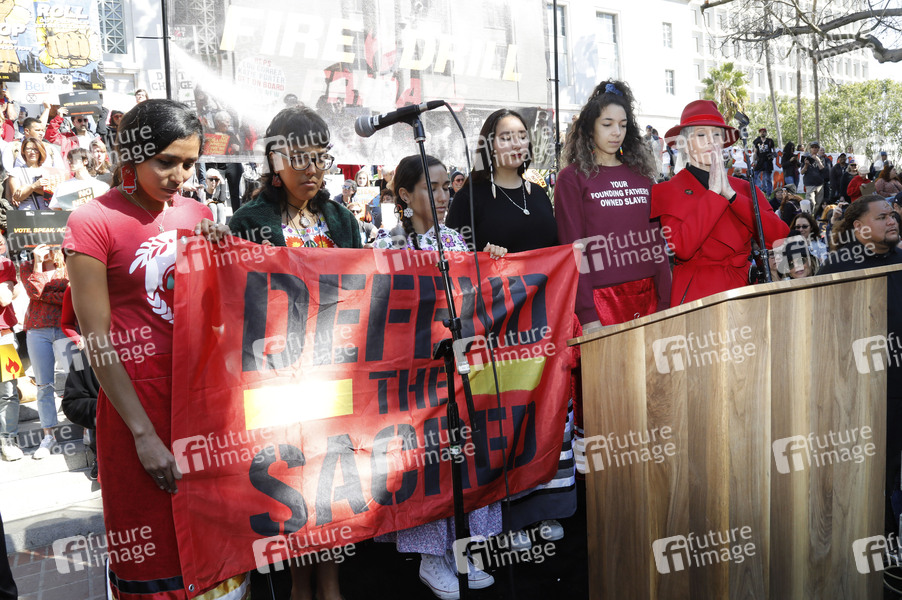 James Fonda spricht bei der Fire Drill Fridays Kundgebung gegen den Klimanotfall vor dem Rathaus. Los Angeles, 07.02.2020