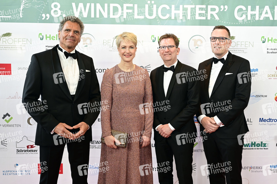 Matthias Birth, Manuela Schwesig, Stefan Schwesig und Thomas Knüppel bei der 8. Windflüchter Charity Gala 2025 zu Gunsten der Stiftung 'Betroffen' im Störtebeker Brauquartier. Stralsund, 05.04.2025