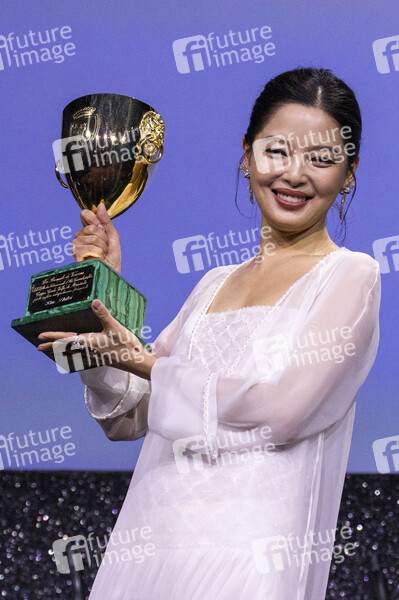 Xin Zhilei mit dem Coppa Volpi für die beste Darstellerin in 'The Sun Rises on Us All' bei der Preisverleihung der Biennale di Venezia 2025 / 82. Internationale Filmfestspiele von Venedig im Palazzo del Cinema. Venedig, 06.09.2025