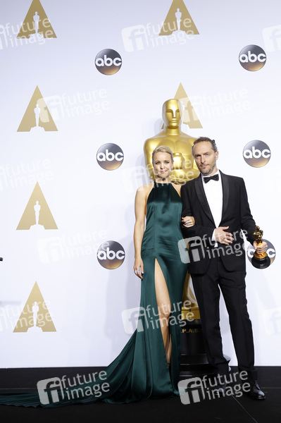 Rachel McAdams und Emmanuel Lubezki (Beste Kamera bei 'The Revenant - Der Rückkehrer') im Presseraum der Oscar Verleihung 2016 / 88th Academy Awards im Loews Hollywood Hotel. Los Angeles, 28.02.2016