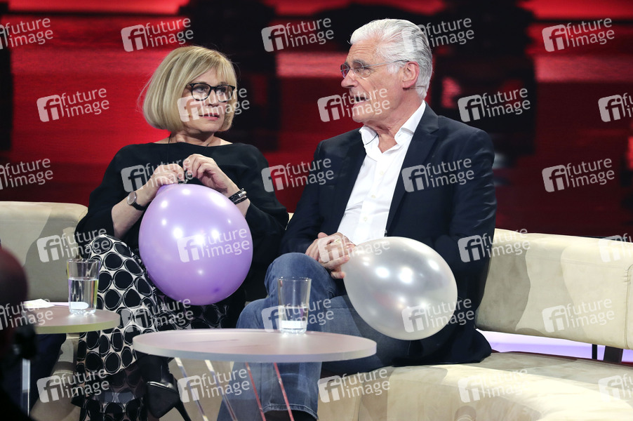 Mary Roos und Sky du Mont bei der Aufzeichnung der ARD-Unterhaltungsshow 'Verstehen Sie Spass?' in den Bavaria Studios. Geiselgasteig bei München, 03.04.2019