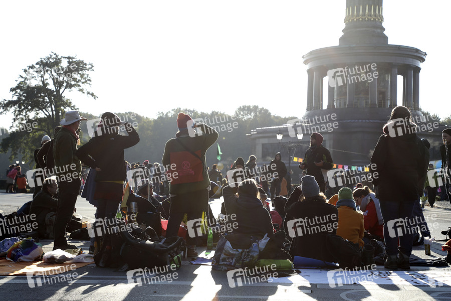 Aktivisten der Umweltschutzgruppe Extinction Rebellion starten eine Protestaktion für mehr Klimaschutz. Hunderte Anhänger besetzen kurz vor Beginn des Berufsverkehrs den Großen Stern, einen der großen Verkehrsknotenpunkte der Hauptstadt. Berlin, 07.10.2019