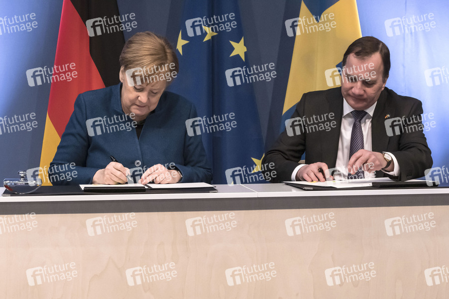Politikerin, CDU, Bundeskanzlerin der Bundesrepublik Deutschland, Politiker, SAP, Ministerpräsident von Schweden, Industriemesse, Automatisierung, Industrie 4.0, Technologie, Wirtschaft, Ausstellung, Fair, Messe, Partnerland Mexiko, Eröffnung, Opening, Deutsche Messe AG, Eröffnungsrundgang, Highlight Tour, Hannover Messe Industrie 2019
