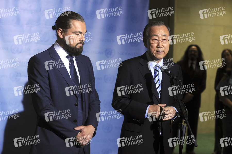 Leonardo DiCaprio bei der Ernennung zum UN-Botschafter des Friedens durch UN-Generalsekretär Ban Ki-moon im Hauptquartier der Vereinten Nationene. New York, 20.09.2014