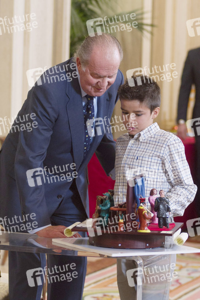 König Juan Carlos empfängt die Gewinner des 'Qué es un Rey para ti' Schulwettbewerbs im Zarzuela Palast, Madrid