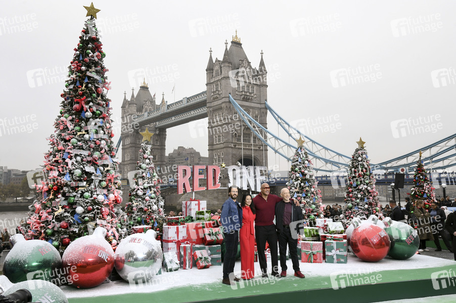 Chris Evans, Lucy Liu, Dwayne Johnson und J.K. Simmons beim Photocall zum Kinofilm 'Red One - Alarmstufe Weihnachten' im Potters Fields Park an der Tower Bridge. London, 06.11.2024