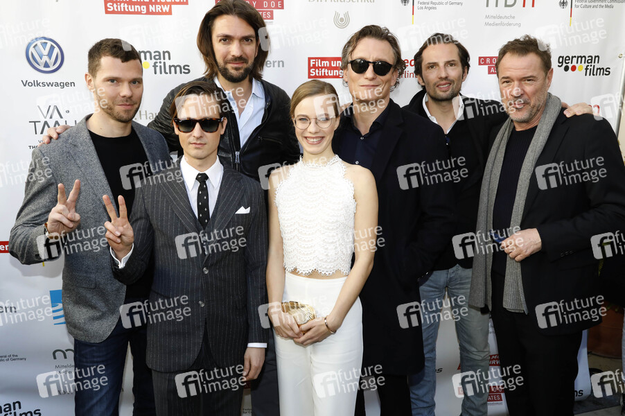 Martin Baden, Tom Schilling, Max Wiedemann, Saskia Rosendahl, Oliver Masucci, Quirin Berg und Sebastian Koch beim Empfang zu Ehren der deutschen Oscar-Nominierten 2019 in der Villa Aurora, Pacific Palisades. Los Angeles, 23.02.2019