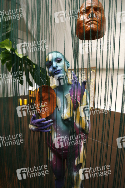 Bodypainting und Fotoshooting mit Model Sarah am Tag der offenen Tür der Meisterschule Justus-von-Liebig-Schule, Abteilung Floristik in Hannover-Ahlem. Künstler: Jörg Düsterwald