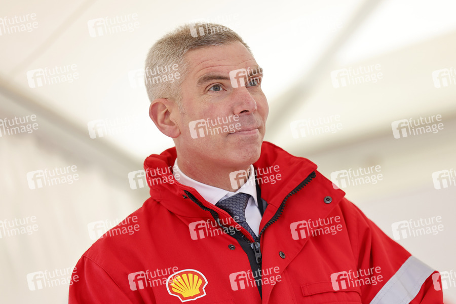 Geschäftsführer von Shell Deutschland, Manager, Auftritt, Shell, Industrie, Raffinerie, Royal Dutch Shell, Produktionsanlage, Gaskonzern, Gasindustrie, Ölindustrie, Ölkonzern, Treibstoff, Klimaziele, Förderung, Energiewende, Chemieindustrie, Kohlendioxid-Ausstoß, Gas, Erneuerbare Energien, Umweltschutz, Energietechnik, Umweltpolitik, Gaspreis, Gaspreise, Industriepolitik, Energiepolitik, Shell Energy, Chemicals Park Rheinland, CO2-neutral, Nachhaltigkeit, CO2-Neutralität, Biogas, Bio-Gas, Bio-LNG, flüssiges Gas, Biomethan, Methangas, Methan-Gas, Baustelle