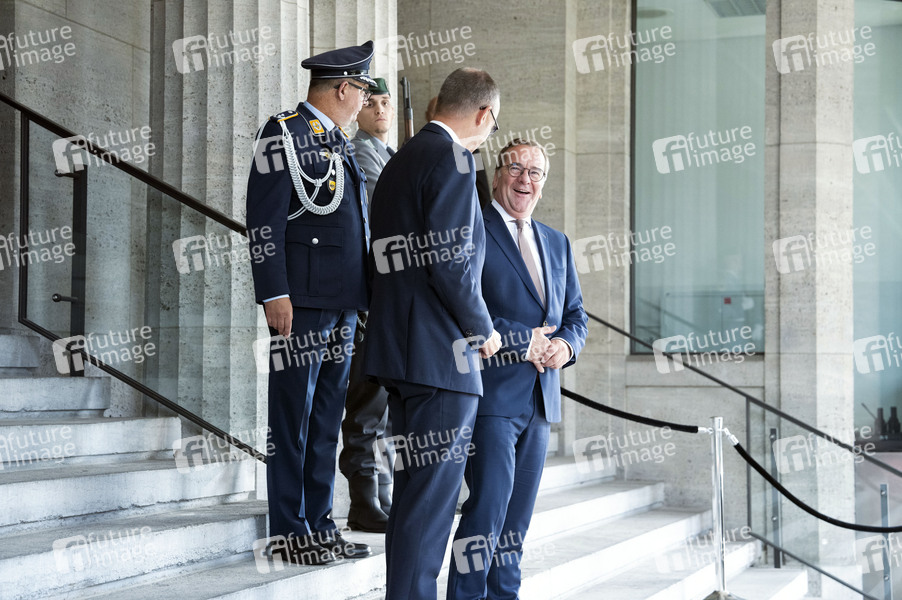 Friedrich Merz und Boris Pistorius bei der Ankunft zur 14. Sitzung des Bundeskabinetts im Bundesministerium der Verteidigung. Berlin, 27.08.2025