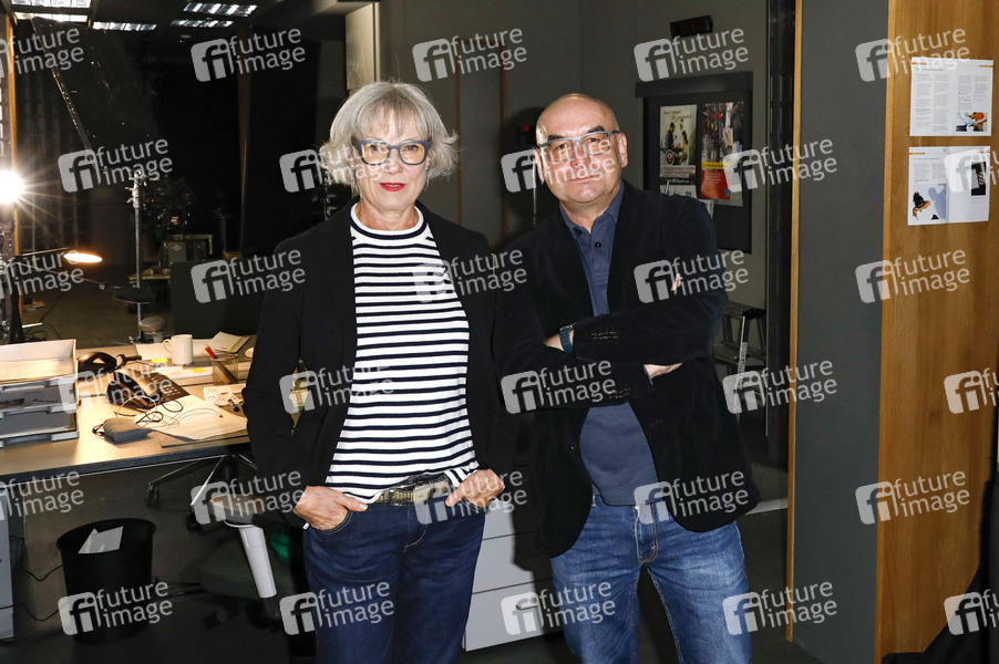 Eva Zahn und Volker Zahn beim Fototermin bei den Dreharbeiten zum ARD-Krimi 'Tatort - Colonius' im Kommissariat-Set in der Max-Planck-Straße. Köln, 26.04.2024