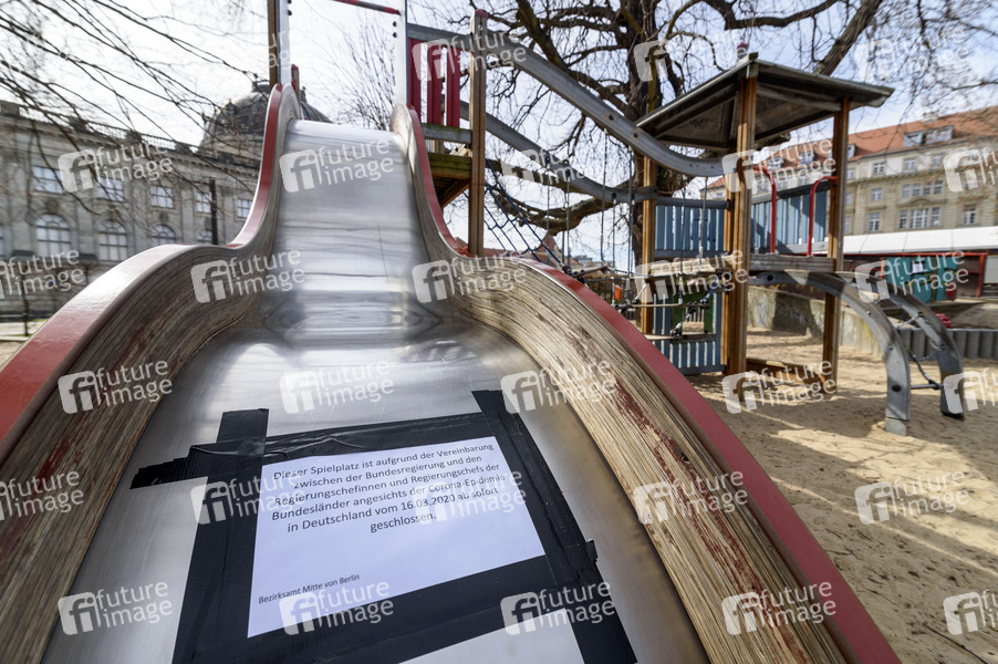 Während der Berliner Senat noch von einer stadtweiten Schließung der Spielplätze absieht, haben einige Bezirke die Spielplätze, wie hier im Berliner Bezirk Mitte, auf eigene Anweisung schließen lassen. Berlin, 19.03.2020