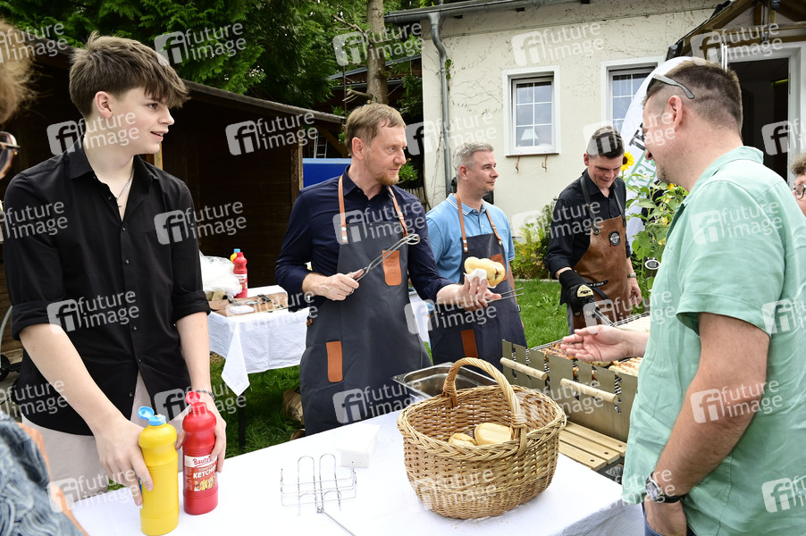 Michael Kretschmer bei der Veranstaltung der CDU 'Kretschmer grillt' im Berggasthof Jauernick. Markersdorf, 14.07.2025
