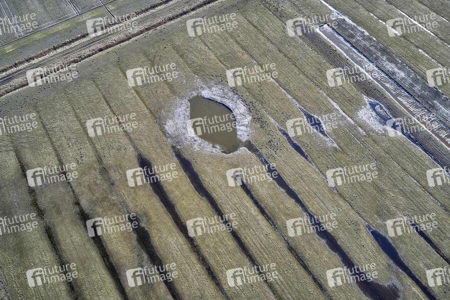 Luftbild der Küstenregion bei Westerhever. (aufgneommen außerhalb der Naturschutzgebiete innerhalb der von der DFS freigegebenen Flugzone Süderheverkoog-Chaussee in Westerhever). Westerhever, 27.02.2021