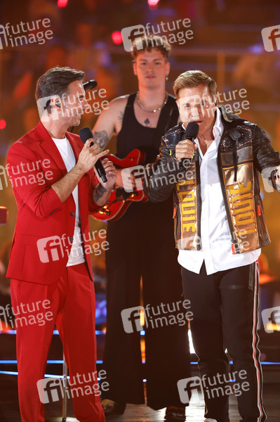 Florian Silbereisen und Dieter Bohlen in der TV-Show 'Schlagerbooom Open Air 2025 - Die Berge leuchten!' live aus dem Stadion Kitzbühel. Kitzbühel, 21.06.2025