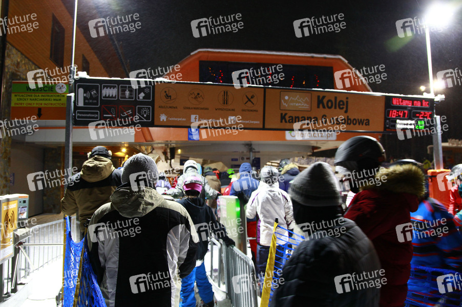 Großer Menschenandrang bis zum Abend auf den Skipisten im niederschlesischen Karpacz (Krummhübel), einen Tag vor dem harten Lockdown in Polen (28.12.2020-17.01.2021). Karpacz, 27.12.2020