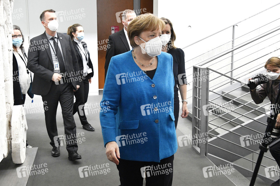 Angela Merkel bei der Ankunft zu ihrer Vernehmung als Zeugin in der 44. Sitzung des 3. Untersuchungsausschusses 'Wirecard' im Paul-Löbe-Haus. Berlin, 23.04.2021