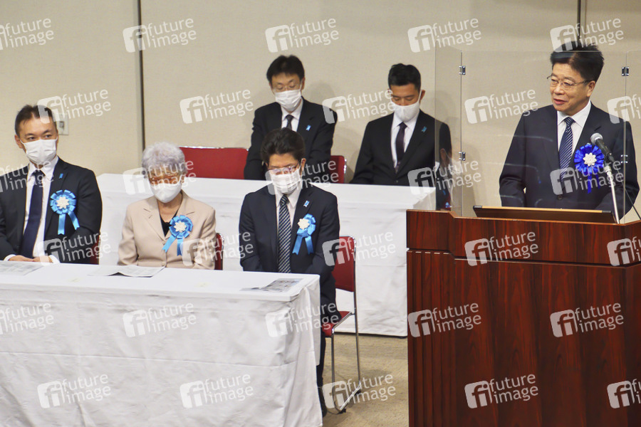 Katsunobu Kato bei einem Treffen der Familien deren Anghörige Opfer einer Entführung von Nordkorea sind. Von 1977 bis 1983 verschleppten nordkoreanische Agenten mindestens 13 Japaner nach Nordkorea. Tokio, 24.10.2020