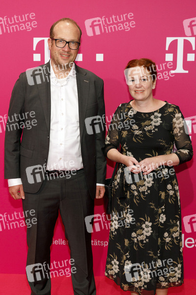 Katja Dörner mit Ehemann Till Winkelmann bei der Uraufführung der mittels Künstlicher Intelligenz vollendeten 10. Sinfonie von Ludwig van Beethoven nach Notizen des Komponisten im Telekom Forum. Bonn, 09.10.2021