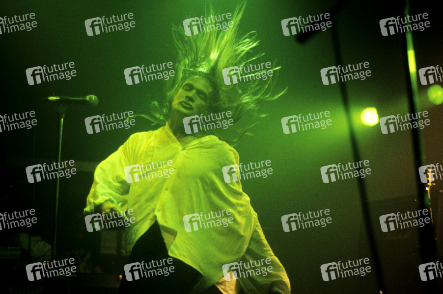 Ben Huggins von den Galactic Cowboys live im Marquee Club. London, 28.08.1991