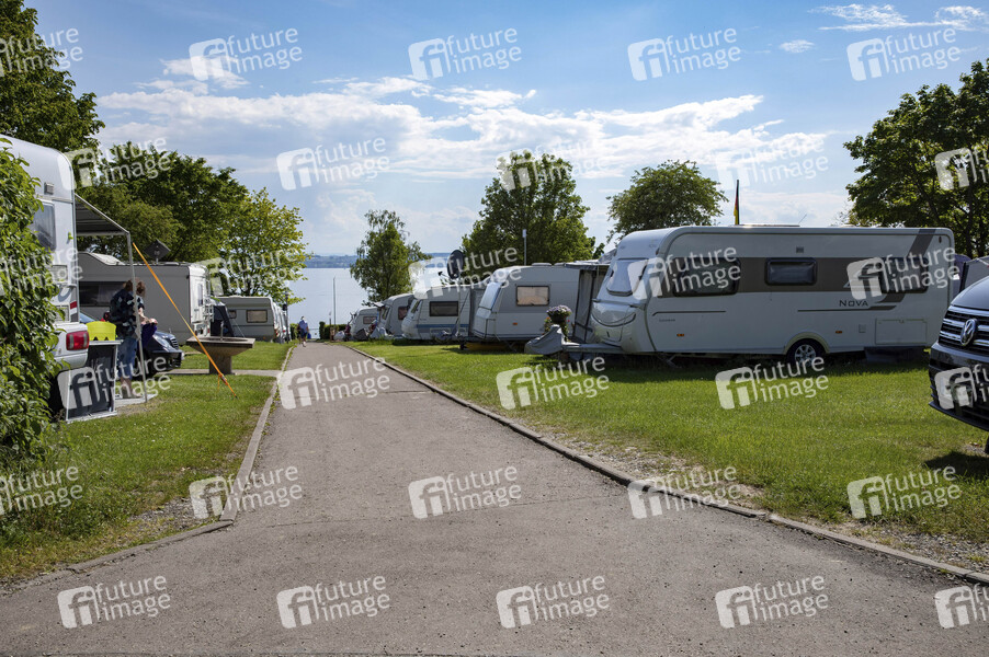 Seit dem 14.Mai 2021 sind in Baden-Württemberg die Campingplätze unter Auflagen wieder geöffnet und am Bodensee meistens voll belegt. Hagnau am Bodensee, 02.06.2021