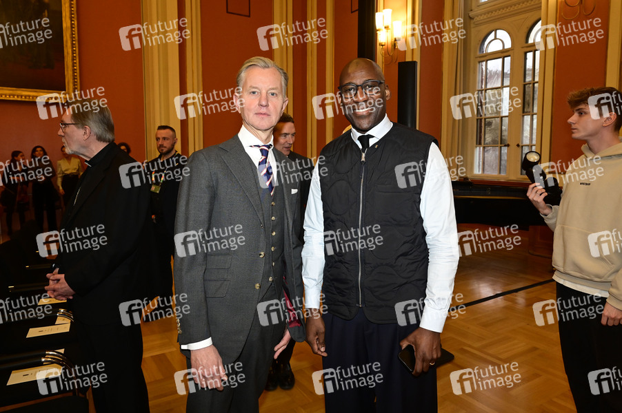 Max Raabe und Joe Chialo bei der Verleihung der Ehrenbürgerwürde an Friede Springer im Festsaal Rotes Rathaus. Berlin, 26.02.2025