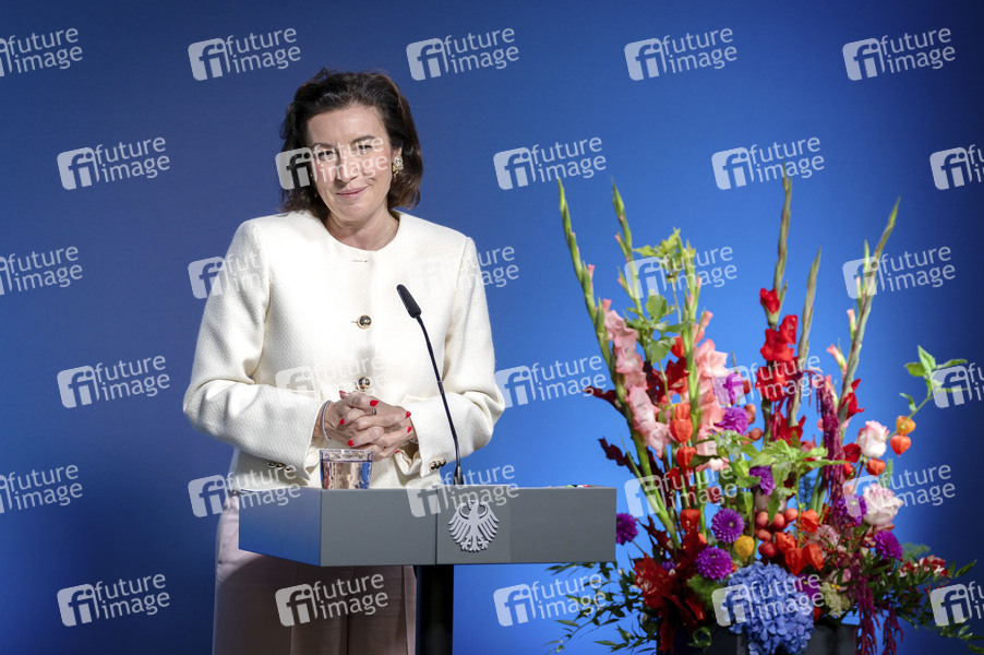 Dorothee Bär bei der Ausstellungseröffnung 'Unsichtbare Wissenschaftlerinnen - Versäumte Bilder' im Bundesministerium für Forschung, Technologie und Raumfahrt. Berlin, 16.09.2025
