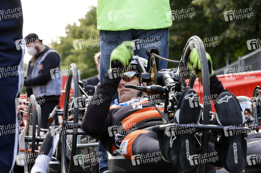 Start der Rollstuhlfahrer und Handbiker beim 40. Berliner Halbmarathon 2021. Berlin, 22.08.2021