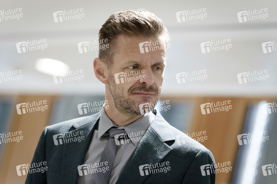 Florian Schröder bei der Ausstellungseröffnung 'Unsichtbare Wissenschaftlerinnen - Versäumte Bilder' im Bundesministerium für Forschung, Technologie und Raumfahrt. Berlin, 16.09.2025