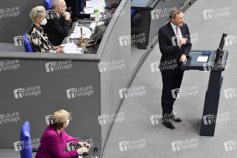 Angela Merkel und Christian Lindner in der 218. Sitzung des Deutschen Bundestages im Reichstagsgebäude. Berlin, 25.03.2021