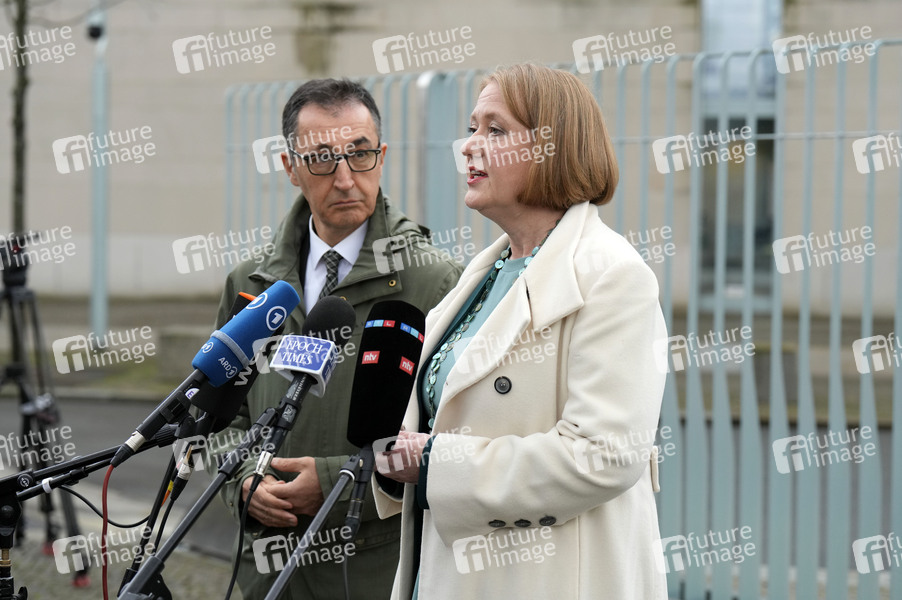 Cem Özdemir und Lisa Paus beim Pressestatement über Bildungs- und Betreuungsangebote für Grundschulkinder sowie zum Engagementbericht vor dem Bundeskanzleramt. Berlin, 04.12.2024