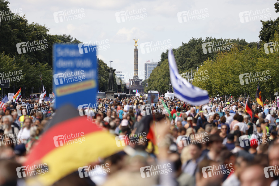 Demonstranten verschiedener Gruppierungen wie etwa der Initiative Querdenken 711 protestierten mit einer Großdemonstration in Berlin gegen die bestehenden Maßnahmen zur Eindämmung der Corona-Pandemie. Wegen Nichteinhaltung der polizeilichen Auflagen wurde die Demonstration durch die Polizei beendet. Es gab Rangeleien und Festnahmen. Berlin, 29.08.2020