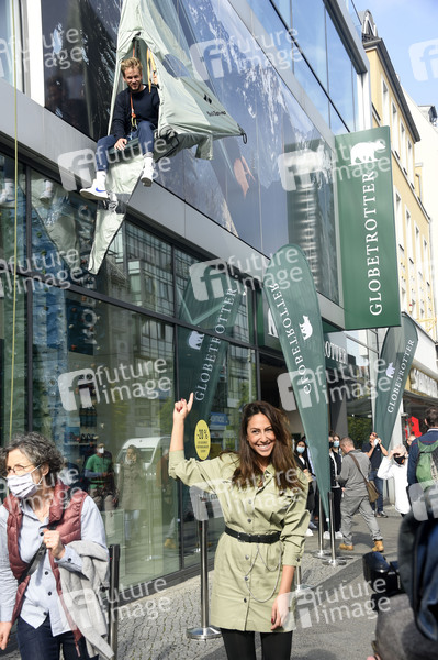 Melissa Khalaj und Frederic Heidorn bei der Wiedereröffnung des neuen Globetrotter in der Schloßstraße. Berlin, 01.10.2020