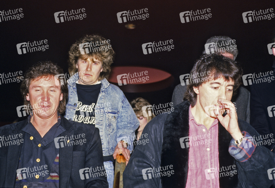 Kenny Jones (The Who, Small Faces) und Bill Wyman (The Rolling Stones) bei der Gala-Premiere des Dokumentarfilms 'Chuck Berry Hail! Hail! Rock 'n' Roll' im Empire Leicester Square. London, 17.02.1988