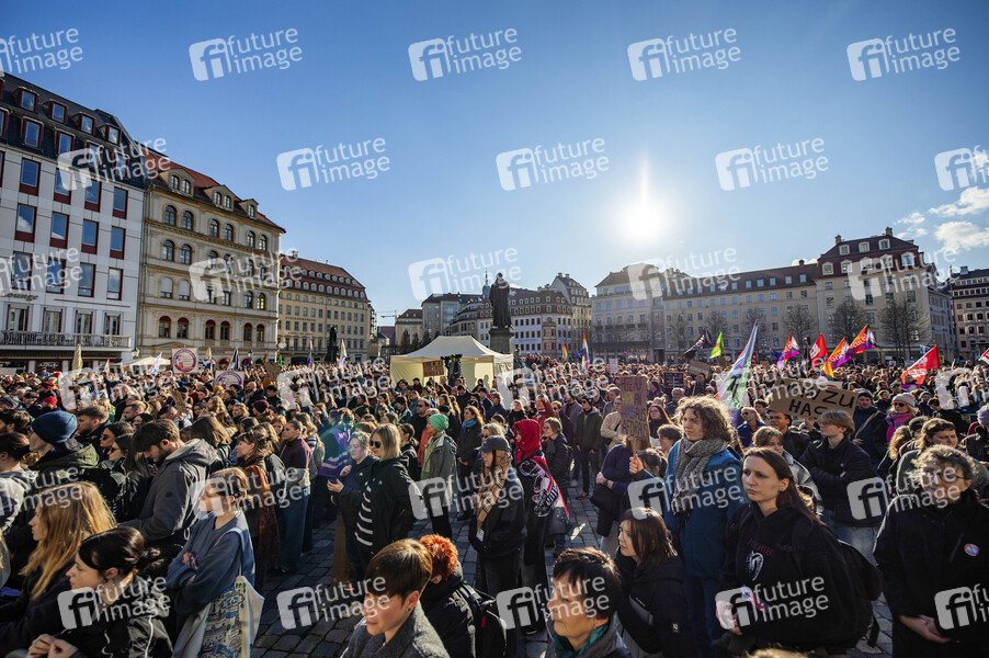 Demonstration unter dem Motto 'Wir sind die Brandmauer' gegen die AfD und den Rechtsruck auf dem Neumarkt. Dresden, 25.02.2024