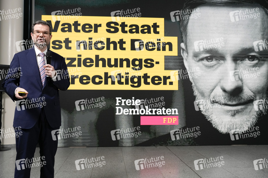 Marco Buschmann bei der Presseskonferenz der FDP zur Kampagnenpräsentation zur Bundestagswahl 2025 im Hans-Dietrich-Genscher-Haus. Berlin, 10.12.2024