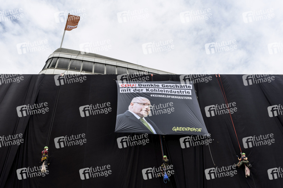 Dunkle Geschäfte mit der Kohleindustrie - Umweltaktivisten von Greenpeace verhüllen die CDU-Parteizentrale um gegen das Kohleausstiegsgesetz zu protestieren. Berlin, 01.07.2020
