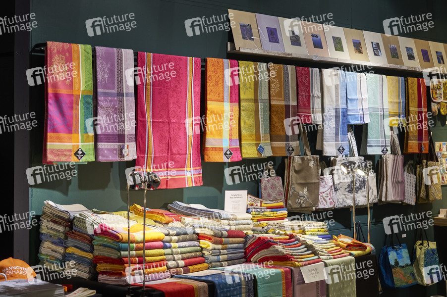 Tischtücher auf der Erlebnis- und Einkaufsmesse infa 2025 auf dem Messegelände. Hannover, 12.10.25