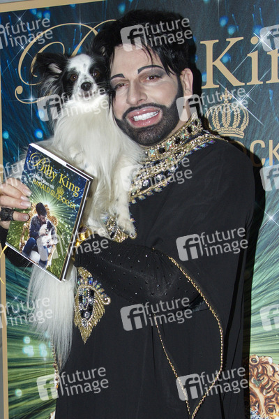 Hund Billy King und Harald Gloeoeckler bei der Buchvorstellung 'Billy King - mein Leben mit Harald Glööckler'. Berlin, 28.02.2013