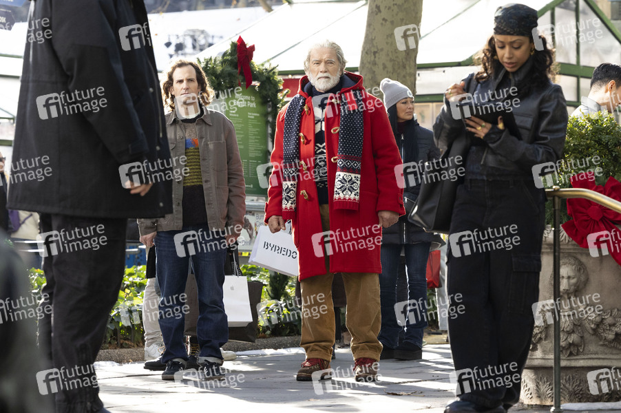 Kyle Mooney und Arnold Schwarzenegger bei den Dreharbeiten zum Amazon MGM Studios Film 'The Man with the Bag' im Bryant Park. New York, 18.12.2024