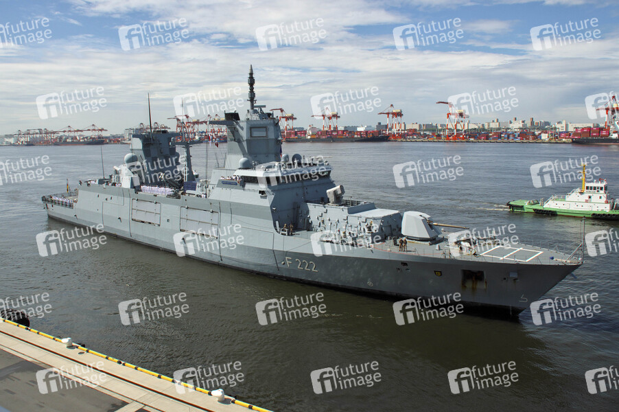 Ankunft der Deutschen Marine Fregatte F222 Baden-Würtemberg am Tokyo International Cruise Terminal. Tokio, 20.08.2024