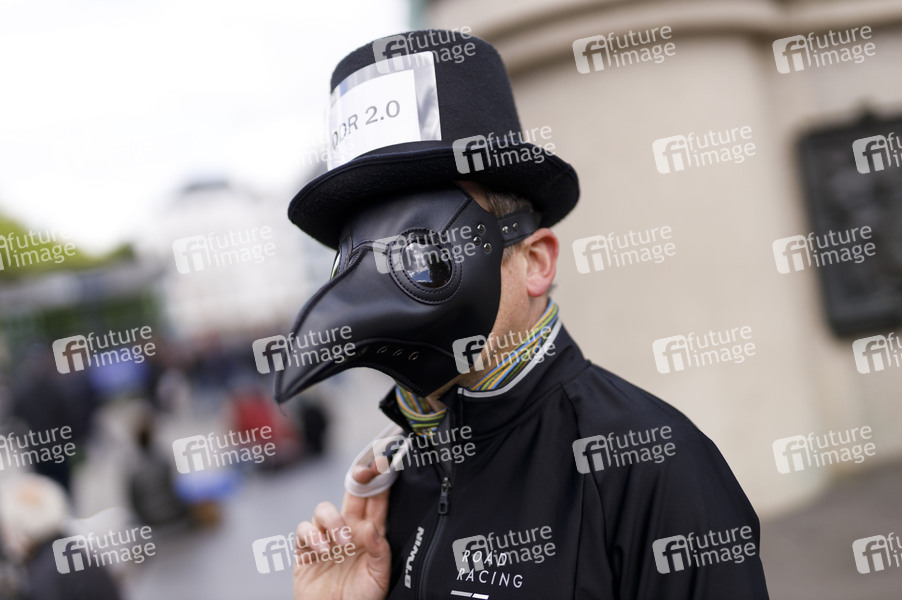 Überwachungsgegner mit Pestmaske am 1. Mai in der Kölner Innenstadt. Köln, 01.05.2020